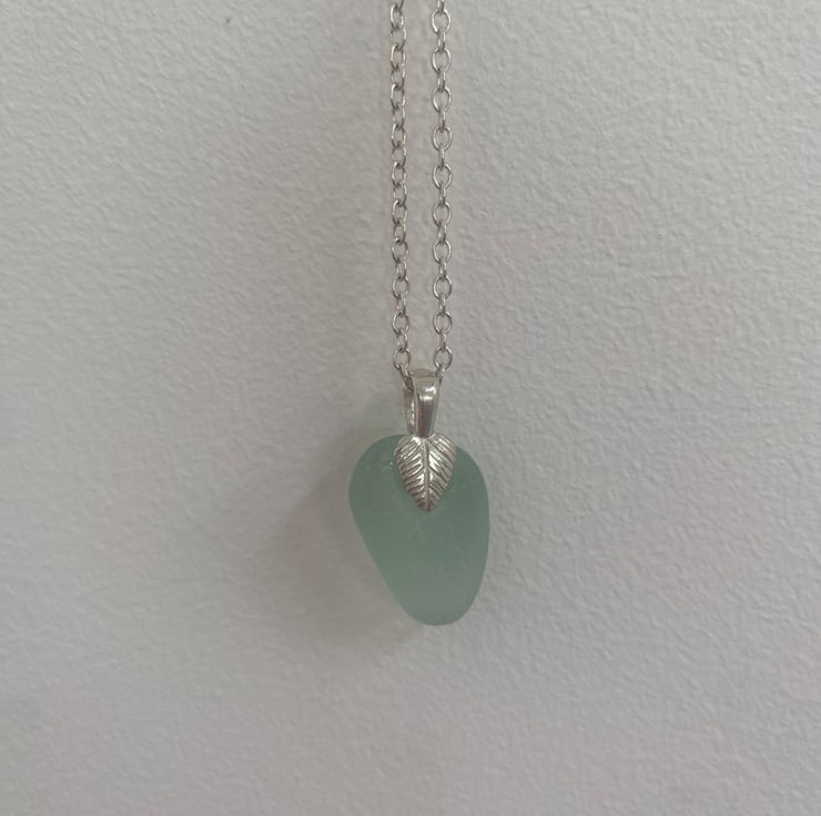 This is Sea Glass picked from my local beach in Cleethorpes hanging from a sterling silver chain on a silver hallmarked bail.