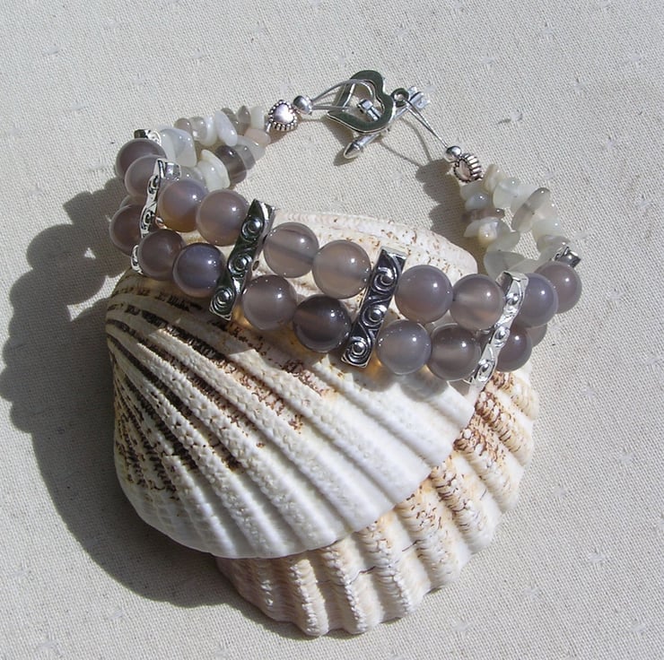 Grey Agate & Moonstone Gemstone Crystal Bracelet