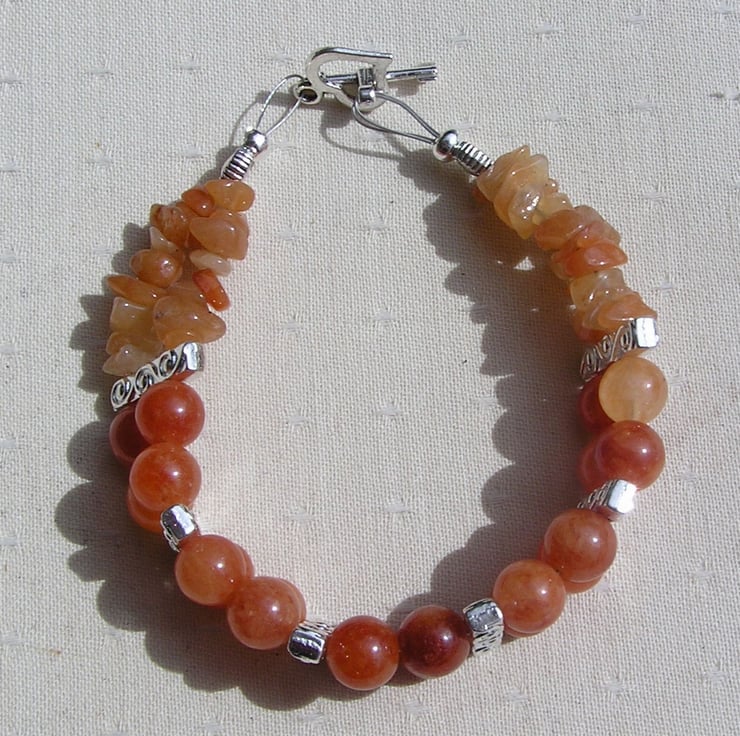 Orange Sunstone & Peach Aventurine Gemstone Crystal Bracelet