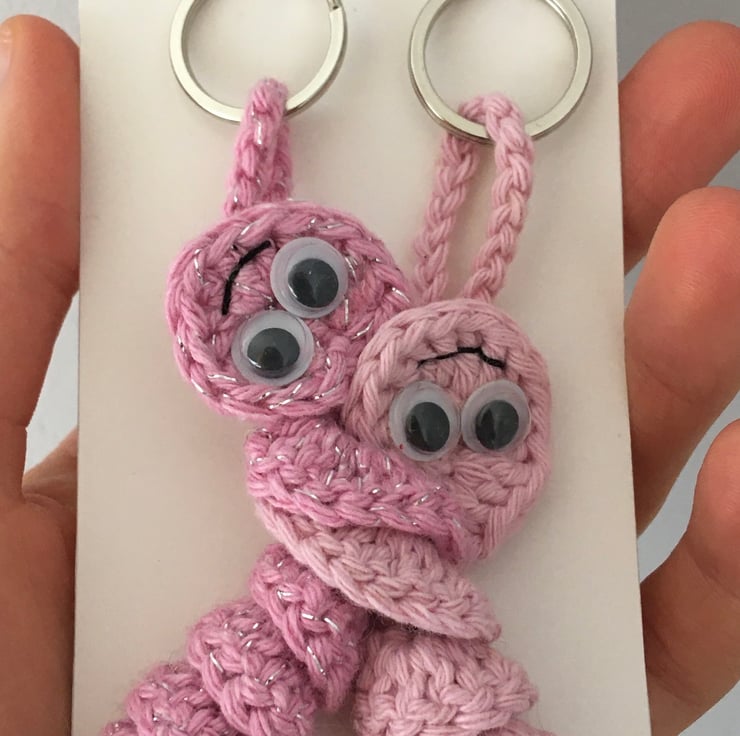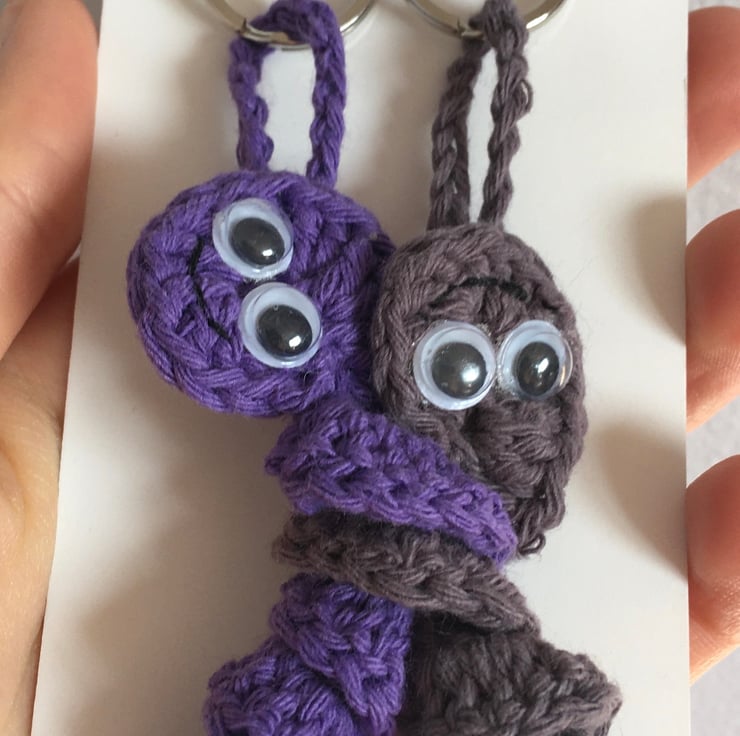 The two little crochet friendship bugs can be separate pieces or intwined together to form one.