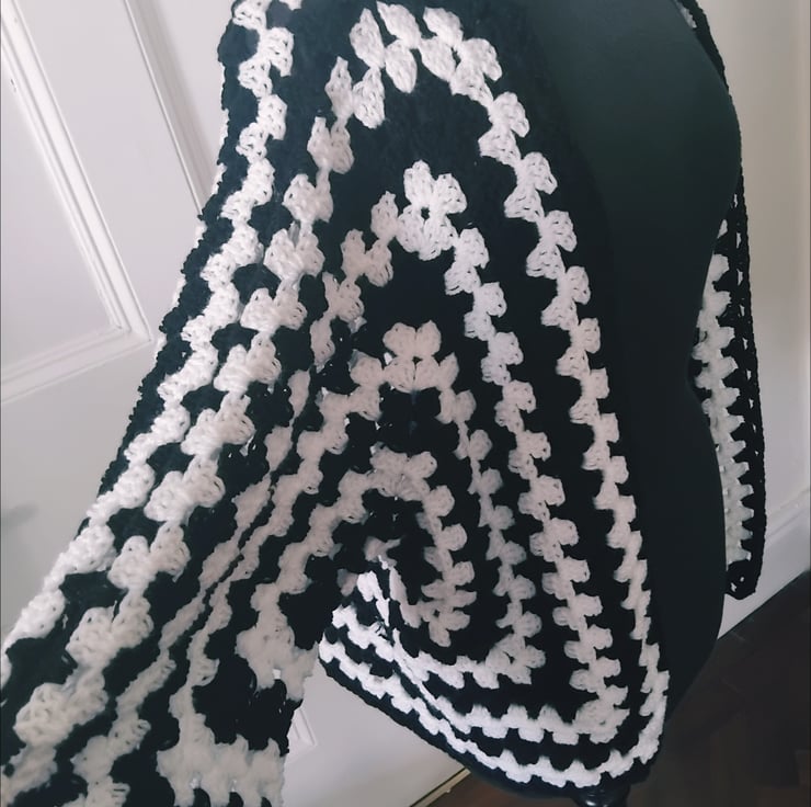 Crocheted in gorgeous soft yarn and with a lovely mix of vibrant hues, perfectly set off by the black and white to really make your outfit pop.