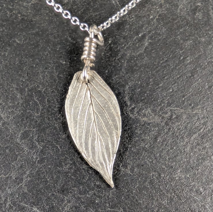 This is a silver Spindle leaf necklace made from silver clay and I felt that the leaf would be the right size on a 16" chain (optionally supplied) for those fey days all year round... 25 mm x 12mm.