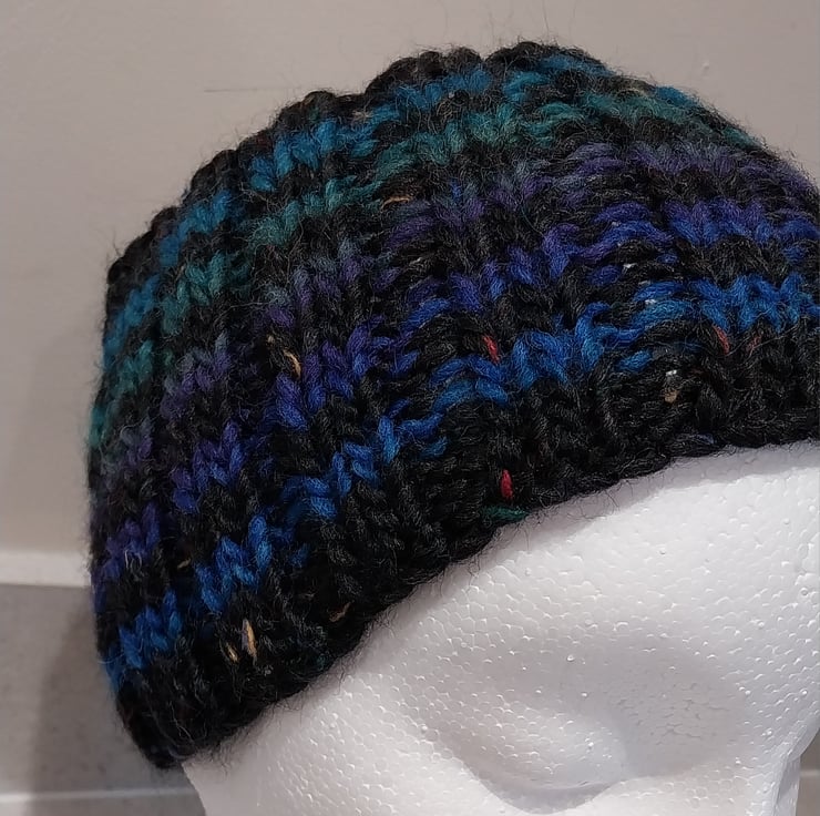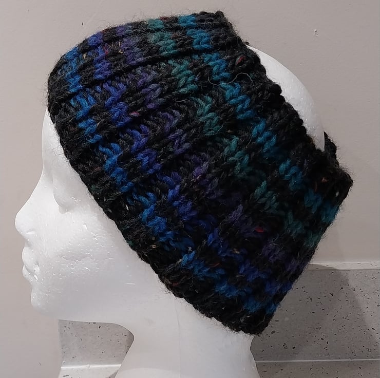 Hand Knitted stripey Merino Headband in Black M