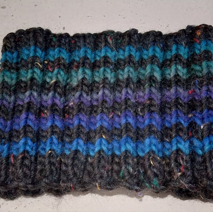 I am really enjoying putting a new earwarmer and headband collection together using a plain colour merino tweed yarn from Sirdar's Sublime range and a self striping pure wool yarn.