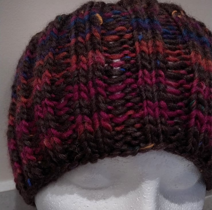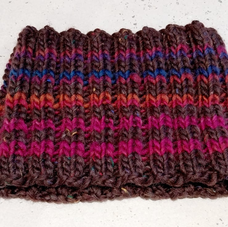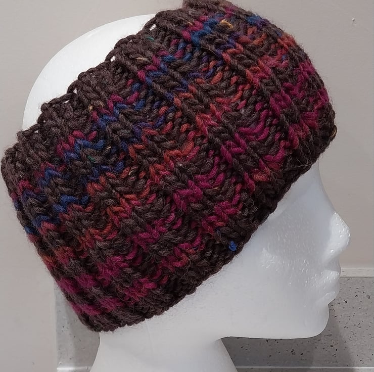 Hand Knitted stripey Merino Headband in Chocolate Brown M
