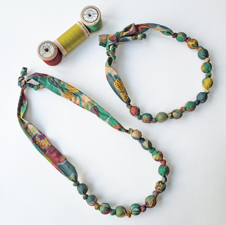 This Liberty print fabric necklace can be tied with a bow or a knot to vary the length from choker to mid chest. It is made out of Tana Lawn 100% cotton and so feels very soft next to your skin and has just the right weight to it to make it hang nicely.