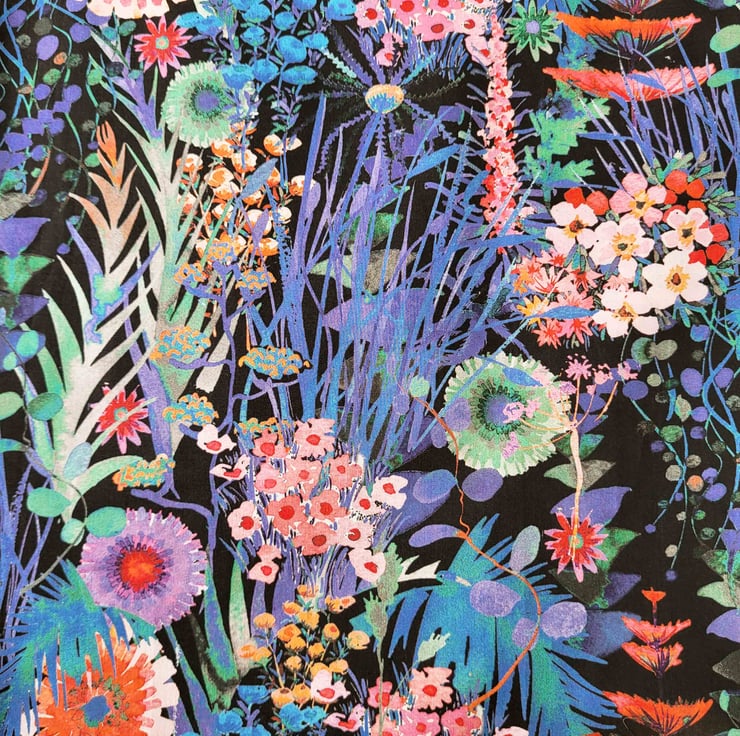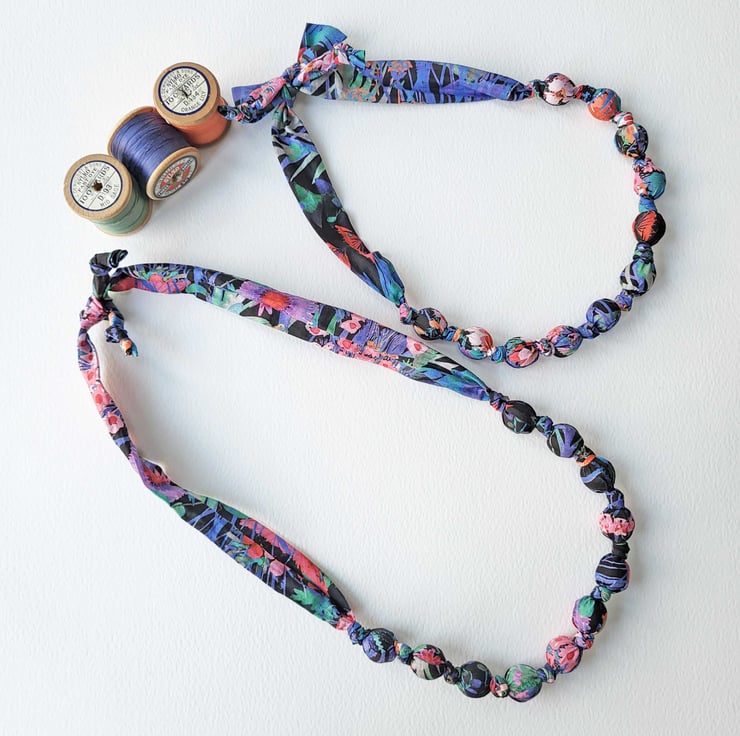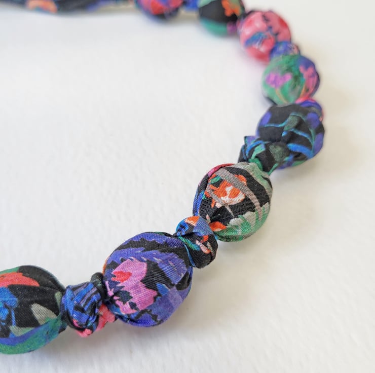 Black Blue Purple Pink & Green Liberty Print Fabric Necklace -Tresco Print E