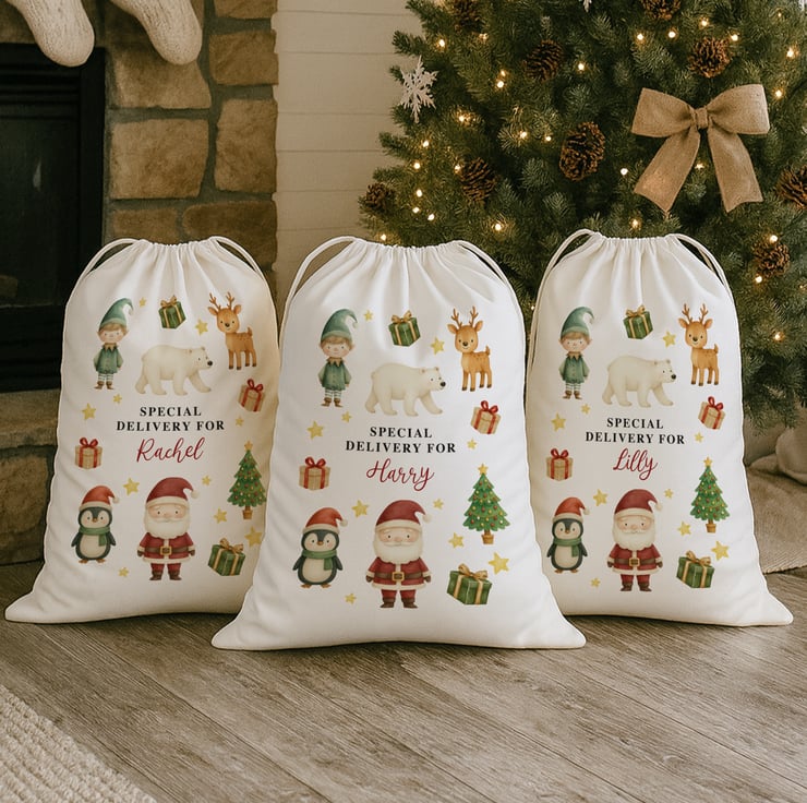 Printed in bright, high-quality colours on a durable drawstring sack, it’s perfect for holding gifts of all sizes and becomes a treasured keepsake year after year.