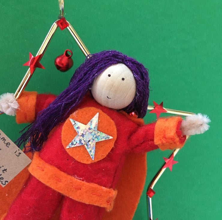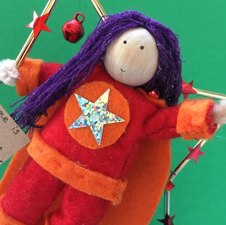 This little superhero is handmade and unique with her own personality.