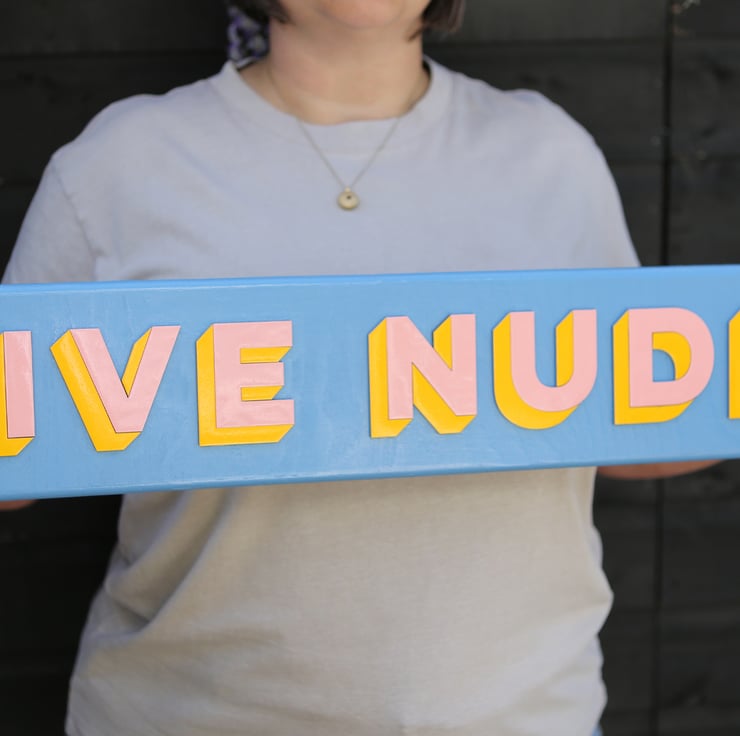 Bring a burst of cheeky charm into your home with this handmade LIVE NUDES sign a playful nod to vintage shopfronts, lovingly crafted in my cozy Devon studio.