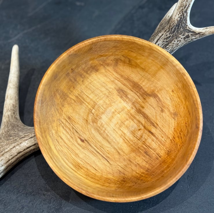 Wooden bowls are a revelation to your eating experience. They feel wonderful in the hand due to the pole lathe turned texture, and transport you to a simpler life. Plus wood is great for keeping your dinner warm as it insulates. Once you start using a wooden bowl it will fit right into your daily routine and will become your 'go-to' eating option, replacing plates even! Combining a wooden bowl and spoon is just perfection. And made from locally sourced wood, this bowl gives the tree a new lease of life! Bowls like this make a great treat for yourself or a present for another