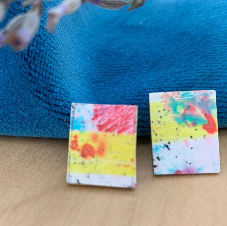 Handcrafted individual pieces of miniature abstract art, combined with its non identical twin, to make a unique pair of earrings. Posts are made from Stainless Steel.