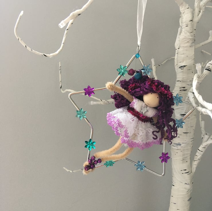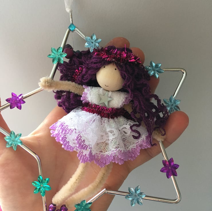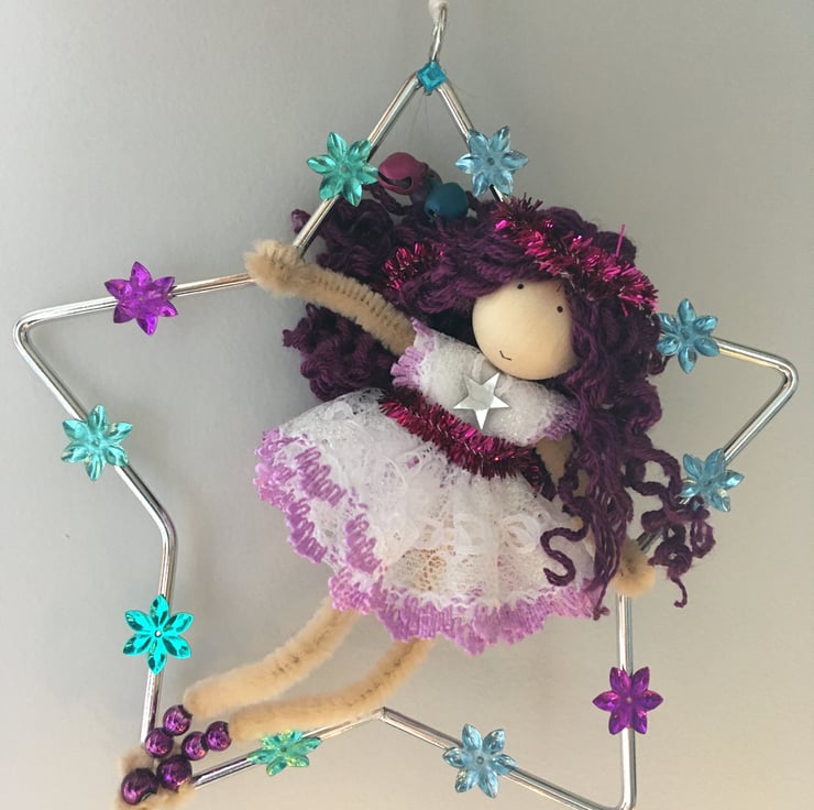 The stars that the fairies are sat in have a hanging loop so that they can be hung from places, for example an indoor Christmas tree.