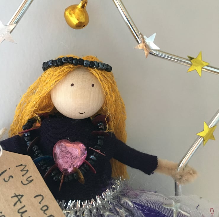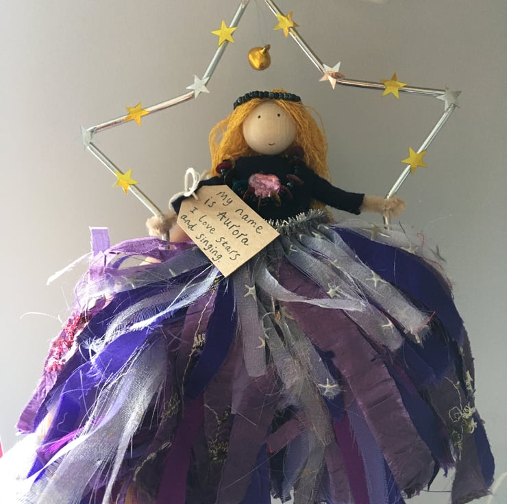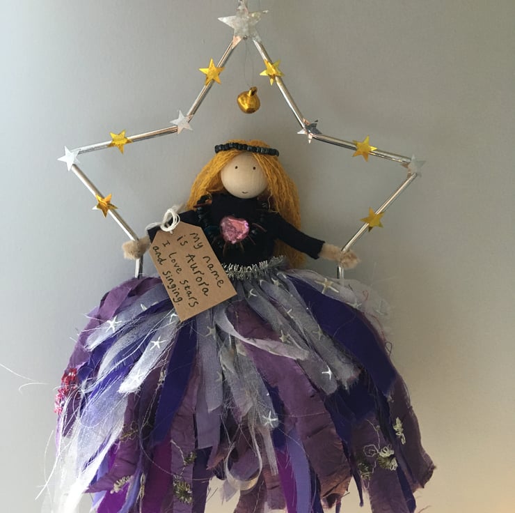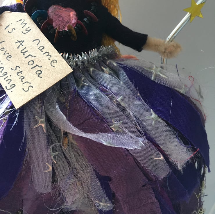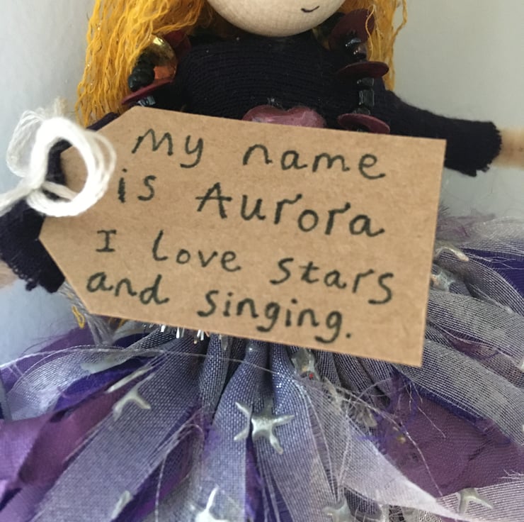 This little fairy person has a tag that states, 'My name is Aurora. I love stars and singing.'