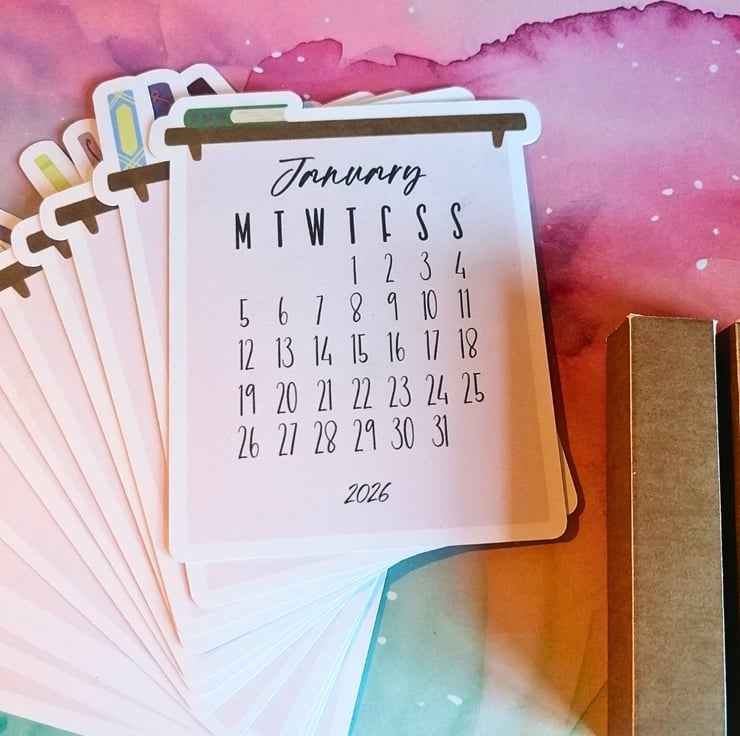 Bookshelf Desk Calendar - stackable calendar for 2026 card stand included