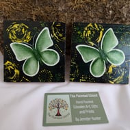 Peacock Butterfly with an abstract background, hand painted by myself Jennifer Hunter.