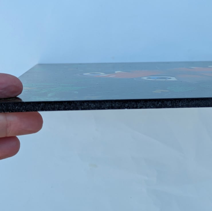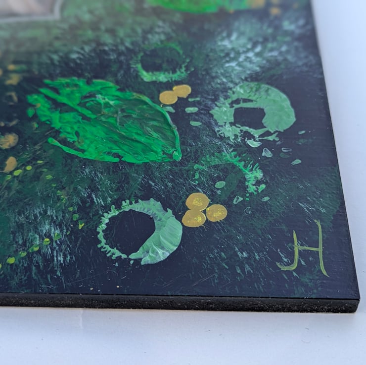 Painted using acrylic paints onto a 30x30cm Artists exhibition panel made from 6mm thick MDF which has been machine primed. The image is protected by an artists gloss varnish and has a smooth white back.
