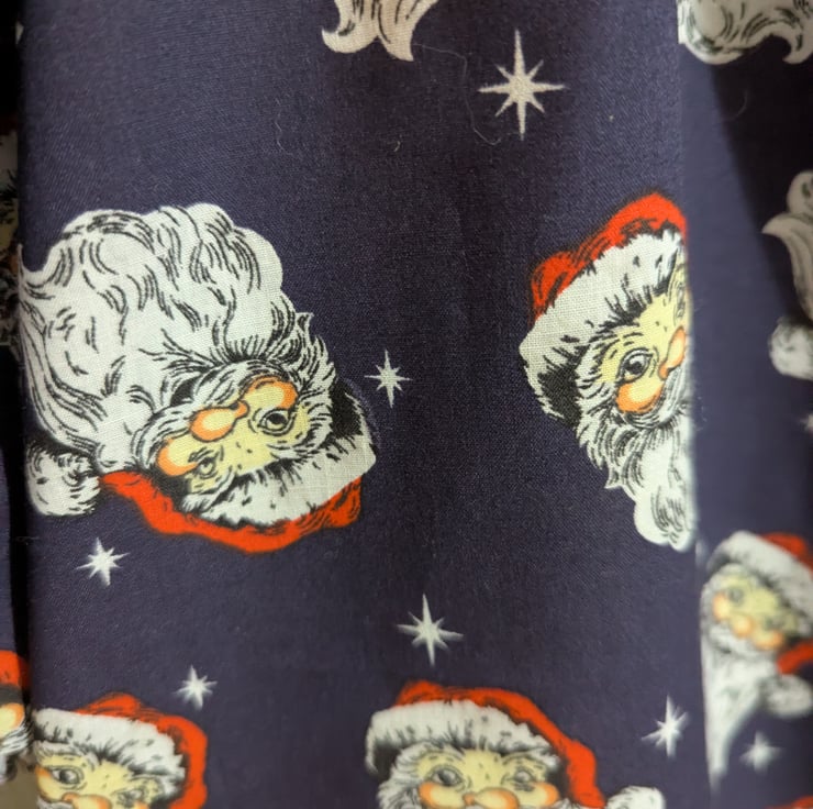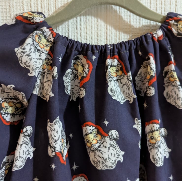 Girls Christmas festive dress beautifully handmade in a navy Santa print.