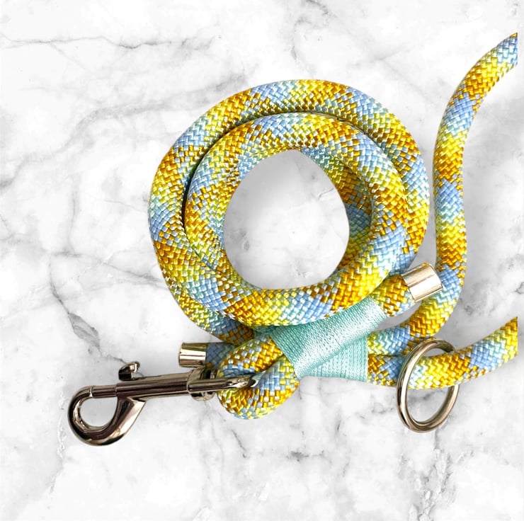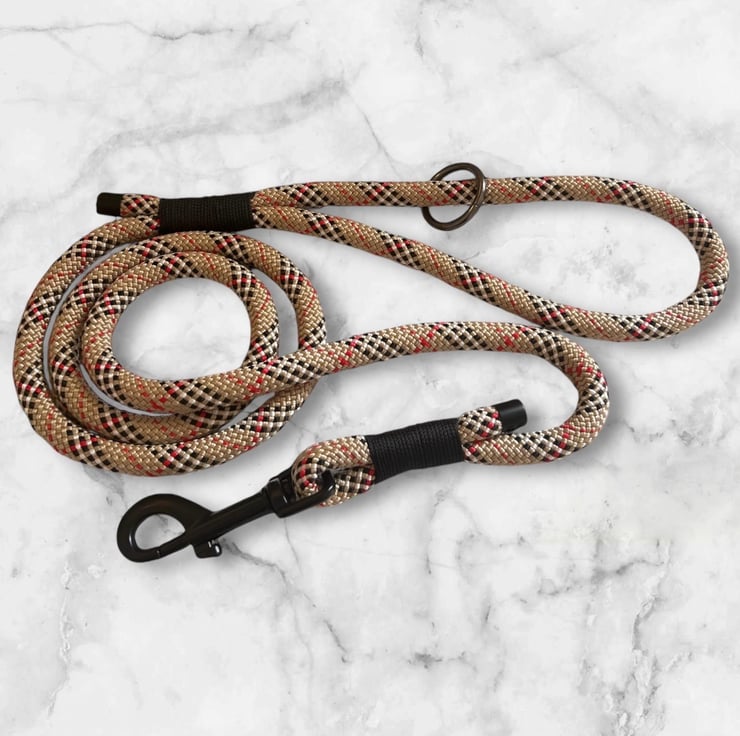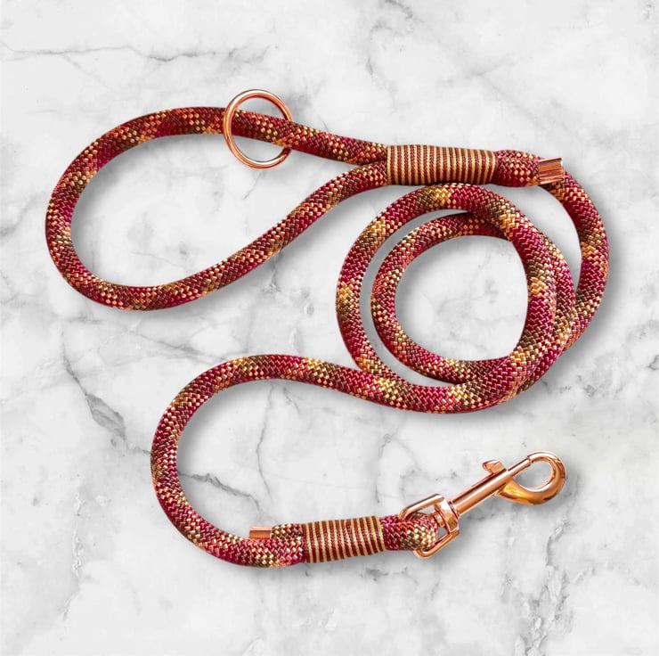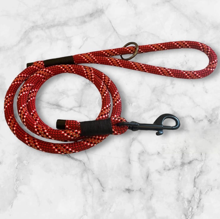 A durable handmade paracord dog lead, customised with your choice of rope, hardware, and whipping colours designed for strength, comfort, and style.