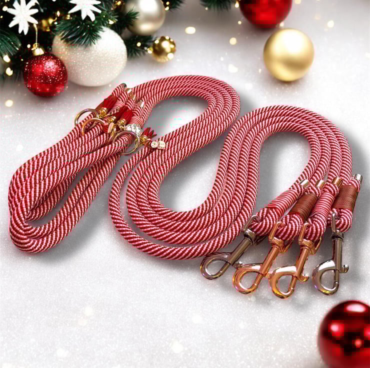 Bring festive cheer to your winter walks with our handmade Christmas dog lead, crafted from strong rope in merry red and green colourways.