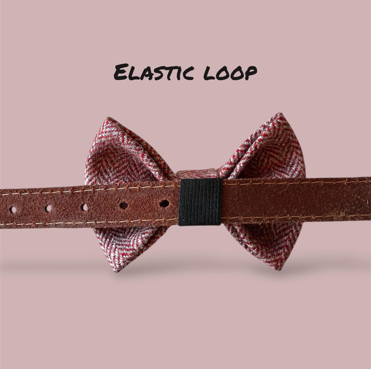 This lovely accessory will fit snuggly on your dogs collar, just slide it on with the elastic loop on the back of the bow. (See photos for reference)