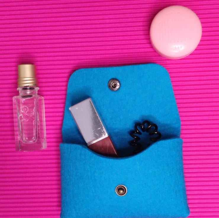 I wanted to turn the everyday chaos inside a handbag into something calm and delightful, creating a charming way to keep cards, lipstick, and small essentials neatly organised. The soft wool felt, paired with bright, flower-inspired details, reflects a desire to bring a little piece of nature’s simplicity into daily life.
