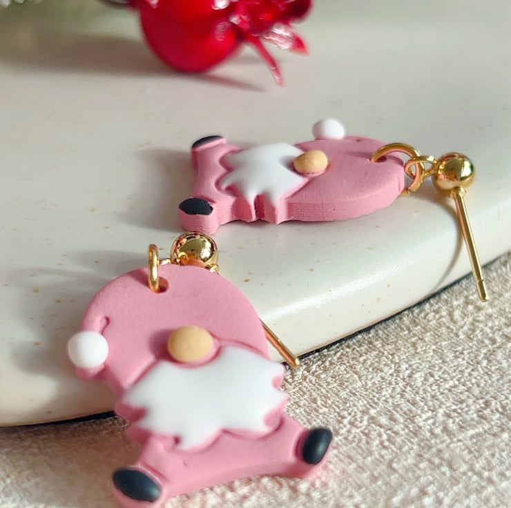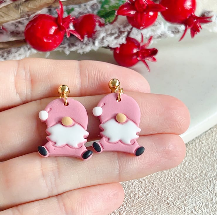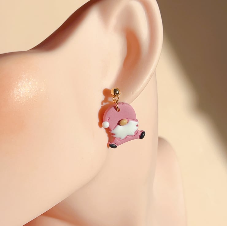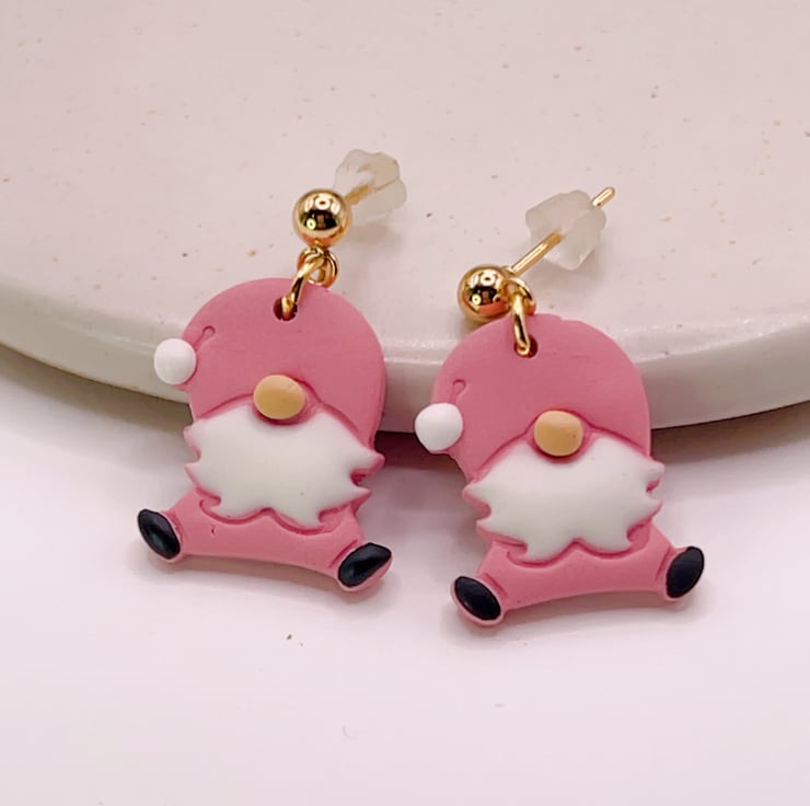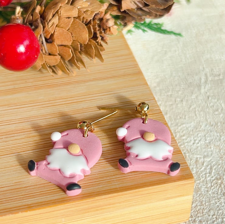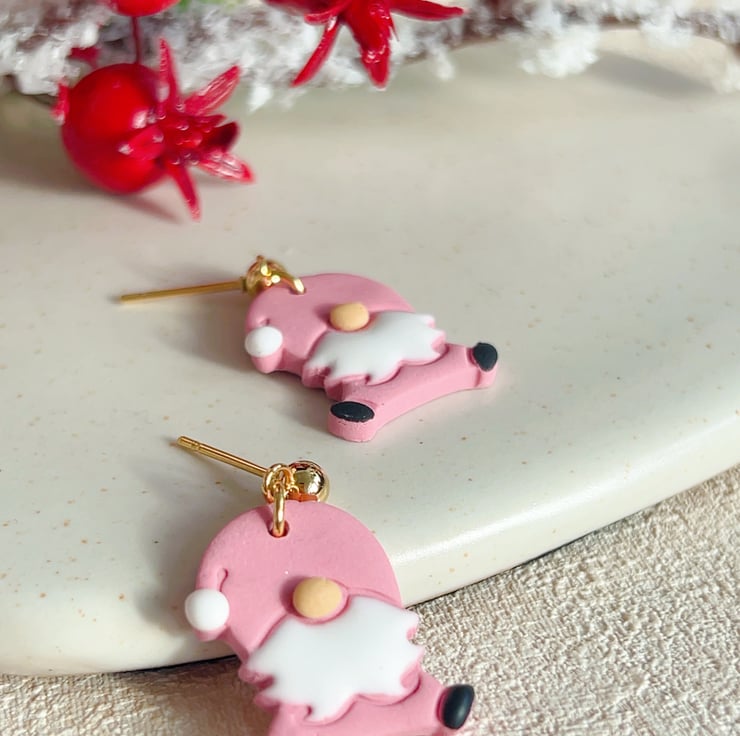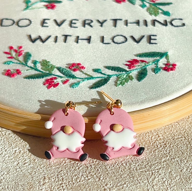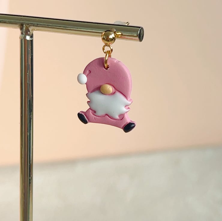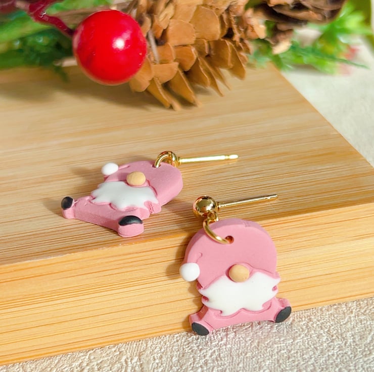 These pink Christmas gnome earrings bring a soft, cheerful festive touch to any winter day.