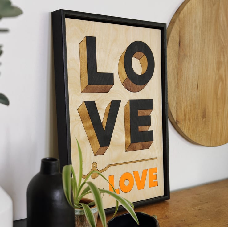 Spread a little joy at home with this “Love is Love” wooden artwork. Each piece is lovingly made in my cozy Devon studio using birch plywood. The bold black lettering sits beautifully against the natural wood grain, with contrasting bright orange.