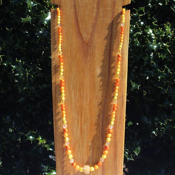 In combination with the yellow, saffron, orange coloured Tagua Seed beads makes a sparkling hot necklace.