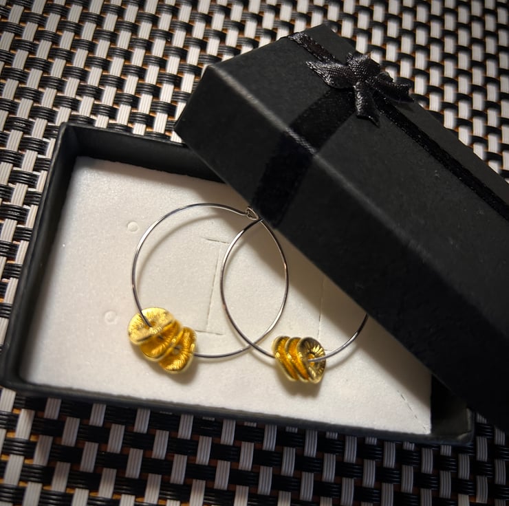 Silver Plated Hoop Earrings with Gold Disc Beads