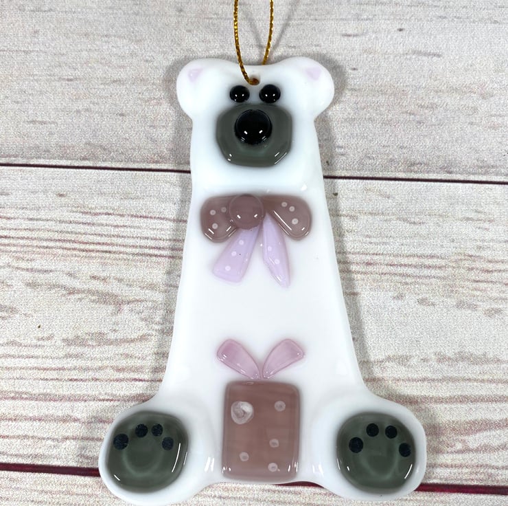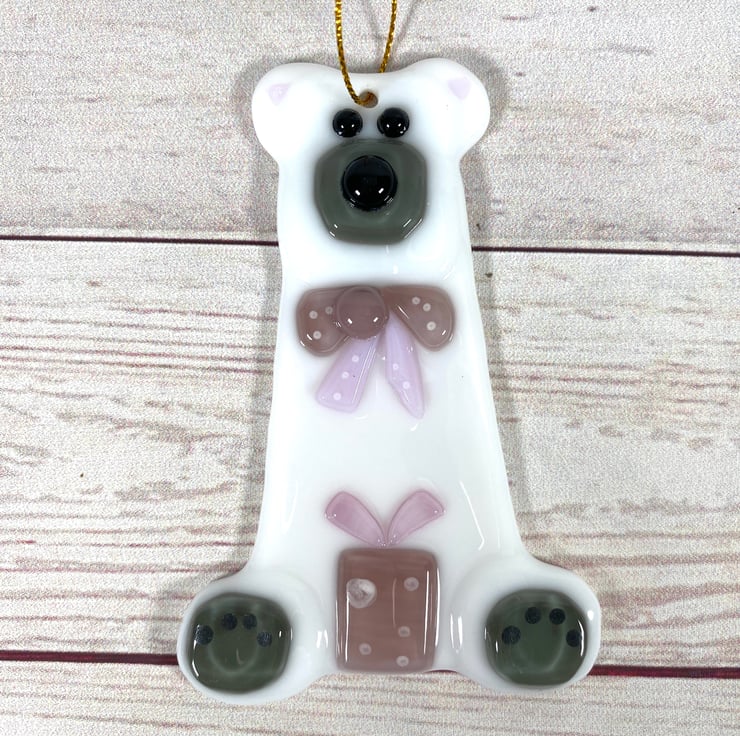 These fused glass teddy bears make a gorgeous small Christmas gift to enjoy year after year on the Christmas tree .