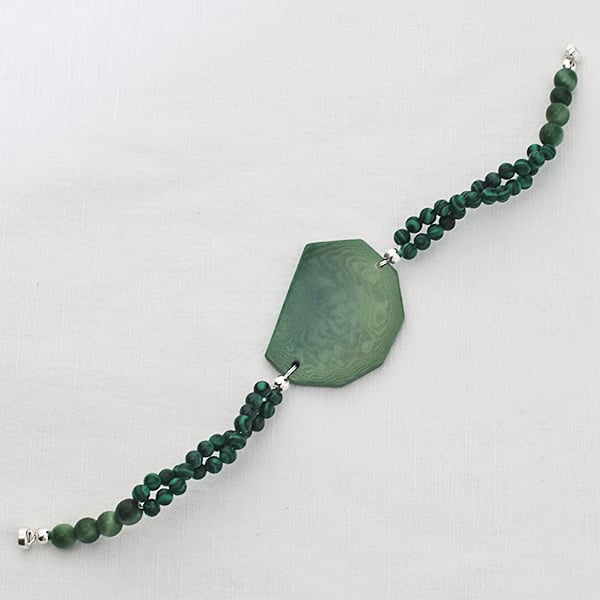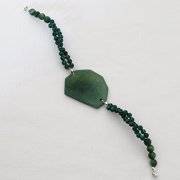 48 Tiny Round Malachite beads in 4 threads & 2 twists.