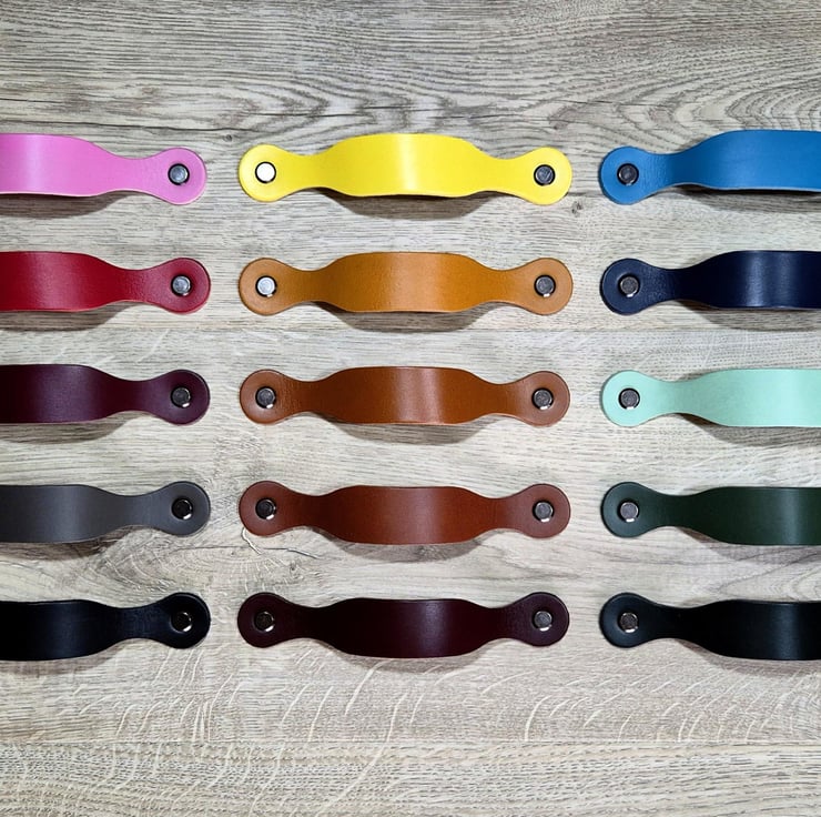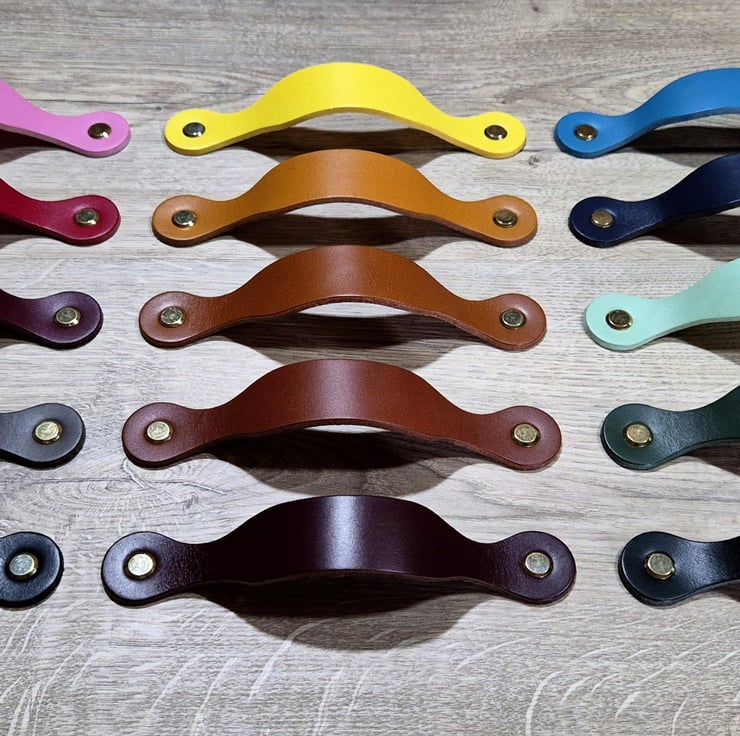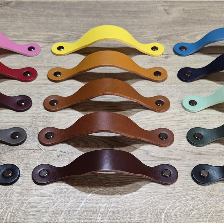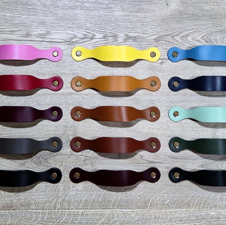 These Italian leather handles produced in our small leather studio at the end of our garden, are an ideal and stylish way to update/upgrade your furniture and with the choice of 15 colours and 3 types of fittings. This gives you great flexibility with your colour decisions.