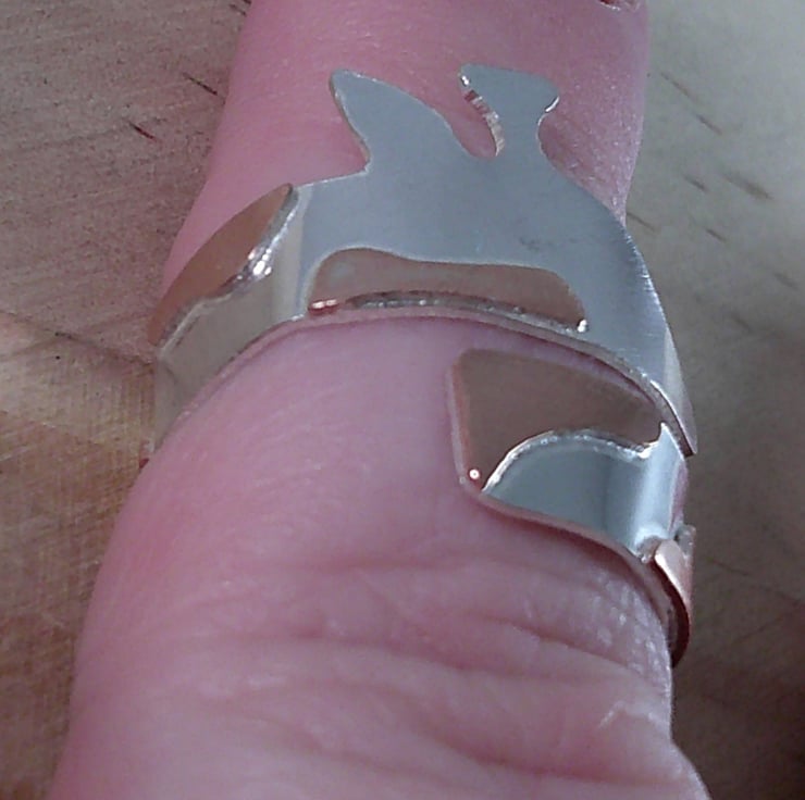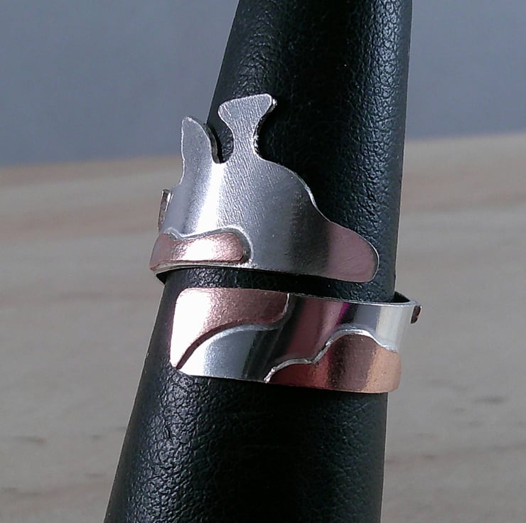 A beautiful and practical ring for any giraffe lover. The ring band is hand-made from sterling silver featuring copper spots for the giraffe neck, which elegantly wraps around the finger in a cross-over style, making this ring suitable for any animal lover.