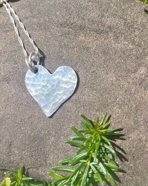 I love heart shapes, they're so simple and timeless. Hammering the surface of the silver makes it capture the light in a beautiful reflective way - I loved making it!