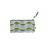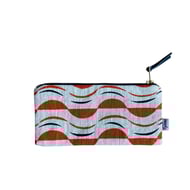 Hand printed zip pouch in my Maronti design. Ideal for keeping bits and bobs organised. Hand screen printed on a natural linen ground in two colours, Orange and dark navy. Navy cotton lining, YKK zip and a leather tie.