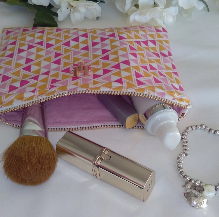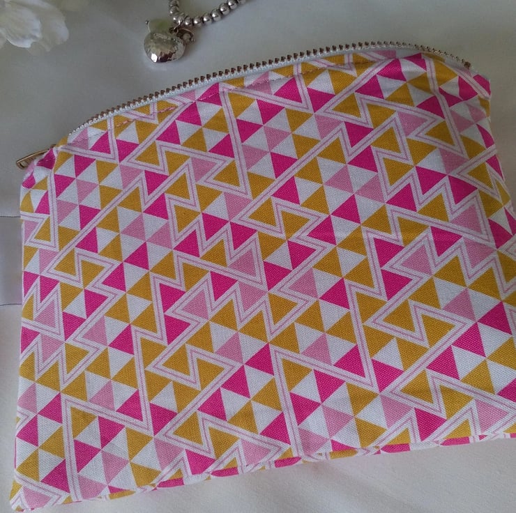 Made from 100% cotton, the pink, white and gold colours are very contemporary. It has a white brass zip that perfectly coordinates with the spring like colours.