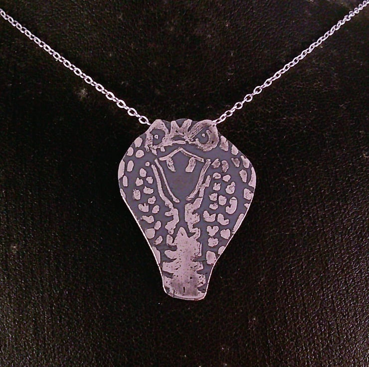 Unleash your inner strength and mystique with this one-of-a-kind Hand-Made Sterling Silver Etched Cobra Necklace.