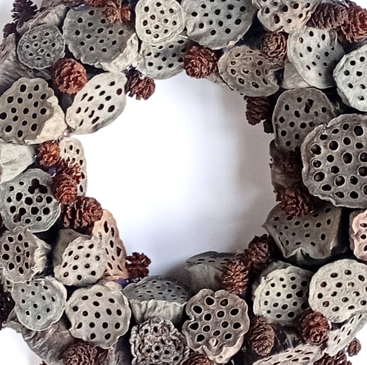 SMALL 'ALL SEASONS' Wreath made from dried lotus flower seed pods and alder tree cones.