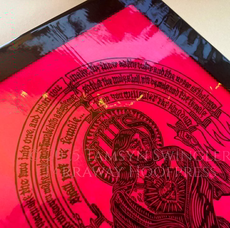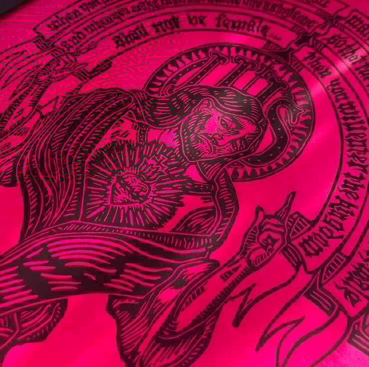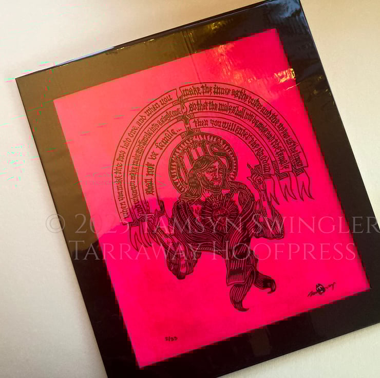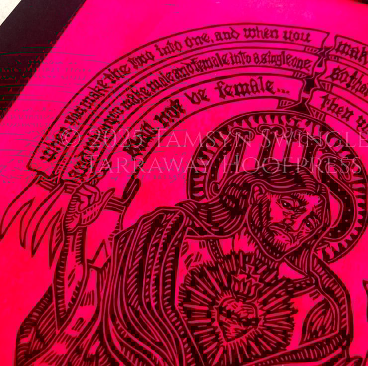 Neon Gnosis I - Limited Edition Pink Lino Print - Jesus in Gnostic Texts