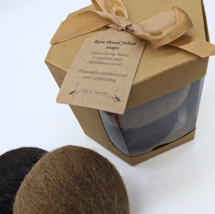 Our new rare breed wet felted soaps are amazing on the skin, wonderfully soft but exfoliating. These soaps will last longer then standard soaps and are antibacterial.