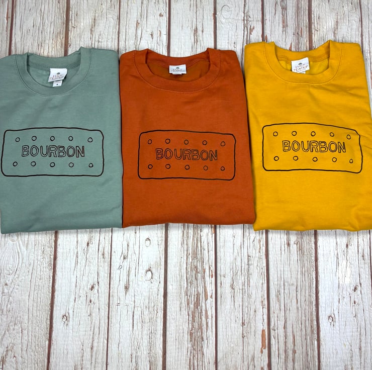 Bourbon Biscuit sweatshirt. Bright colourful Unisex Fit crew sweater