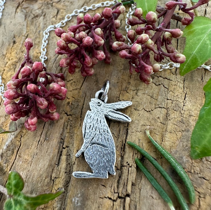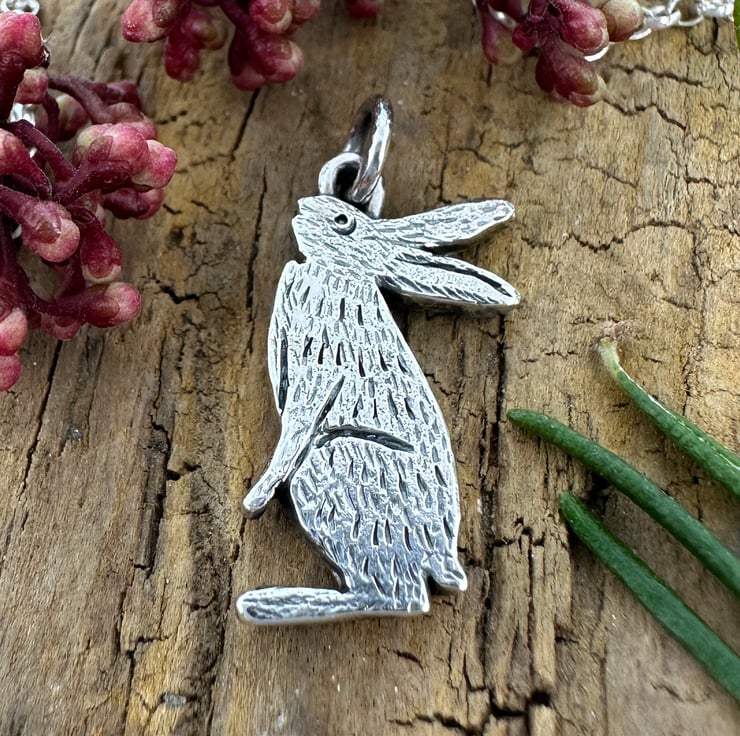 Inspired by my love of hares and the mythology that surrounds them. Made in sterling silver using traditional jewellery making techniques.