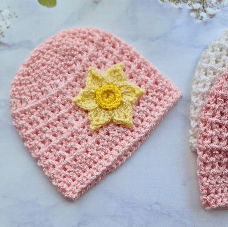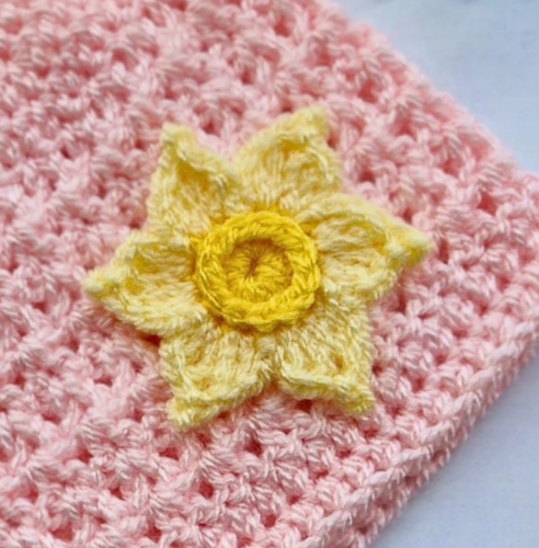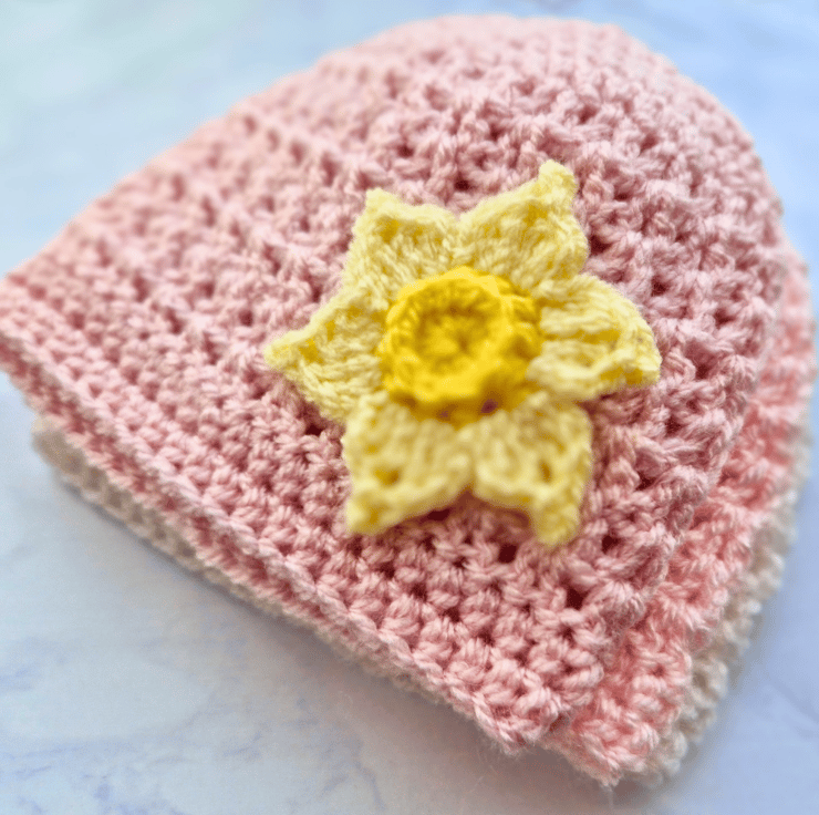 Newborn Baby Daffodil Hat – Handmade Crochet Gift in Powder Pink