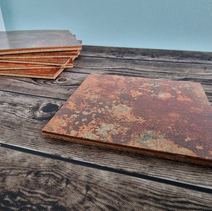 Each coaster measures 10cm x 10cm, and has a waterproof & heatproof gloss finish. A cork finish has been applied to the underside of each coaster.