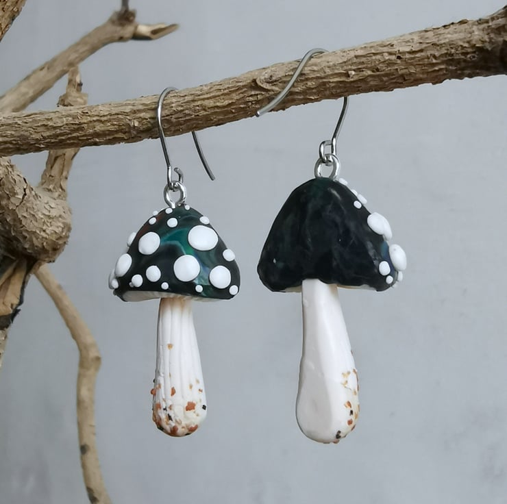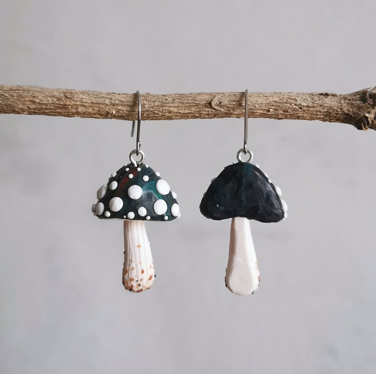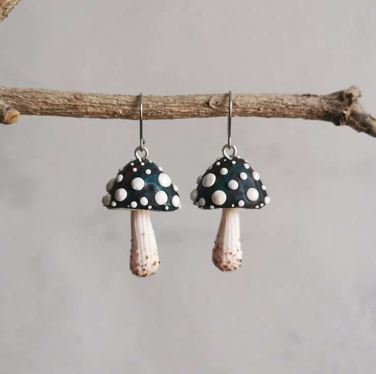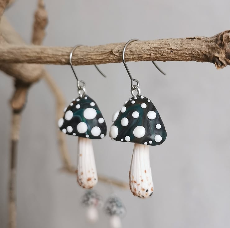 Stylised dark mushroom earrings for someone who wants something a little different from your standard red.