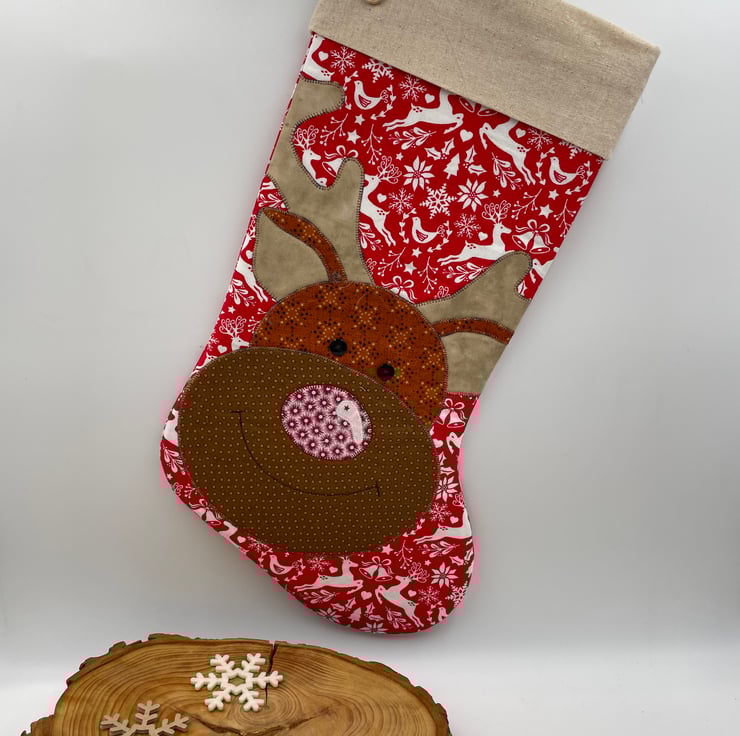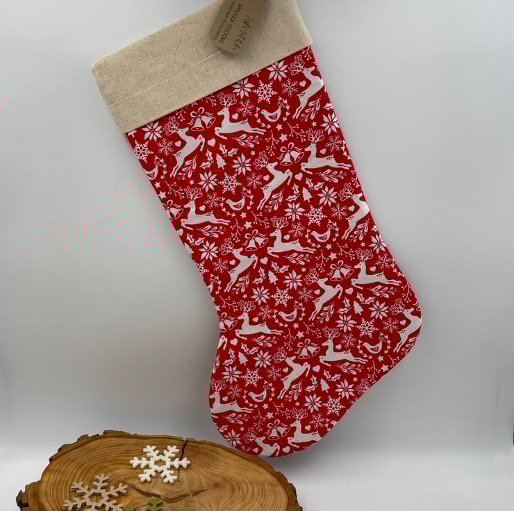 A 'handmade with love' wooden button finishes off the stocking perfectly and is perfect for hanging a Christmas gift tag from.
