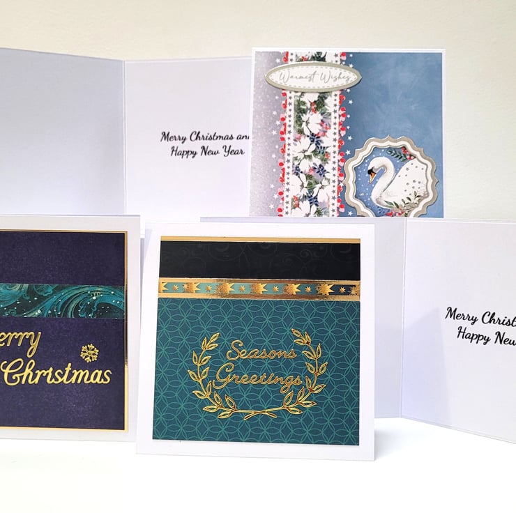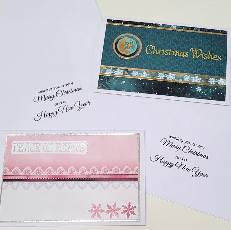 - Each card features a different festive sentiment on the front (e.g., Merry Christmas, Peace on Earth, Season’s Greetings, Festive Wishes, Let it Snow, etc).