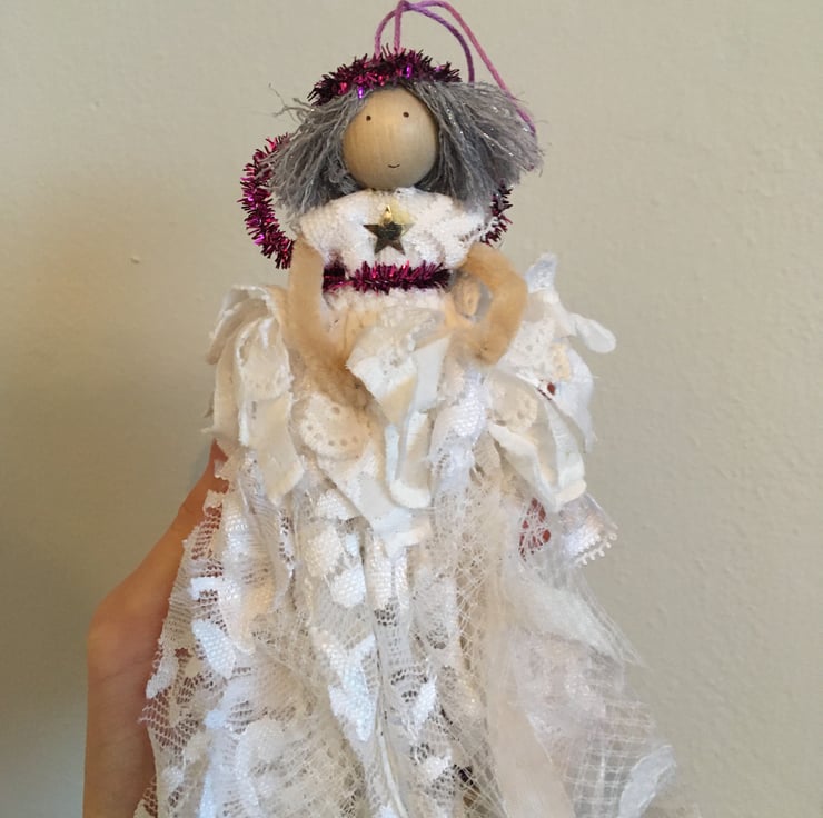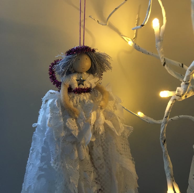 Angel fairy hanging Christmas tree decoration. Each one is handmade and unique with their own personality.