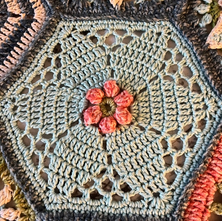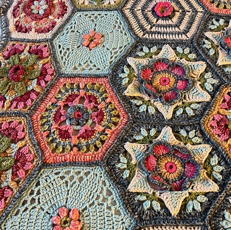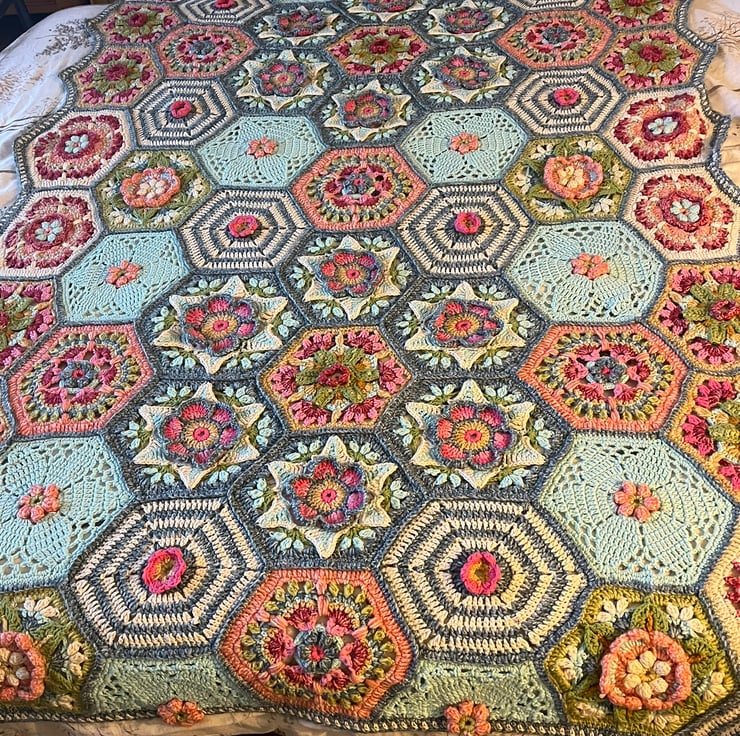 Crochet Blanket using washable Stylecraft Organic Cotton, Batik and Special DK yarns based on a pattern by Janie Crow